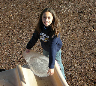 or so it seemed from the inside looking out. In the end I relented and let the kids move the easel back inside. It was sunny but also cold and windy. The cold wasn't much of a problem, but the wind kept tearing the thin paper sheets.